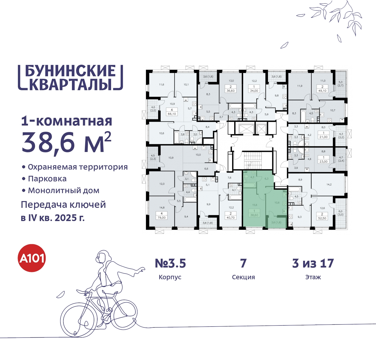 этаж: 3 (всего: 17), кол-во комнат: 1 Срок сдачи: IV Квартал 2025 Продается 1-комн. квартира от застройщика с отделкой в ЖК "Бунинские кварталы" на 3 этаже. Общая площадь: 38.7 кв.м. Высота потолков 2.95 м. В квартире будет выполнена полная отделка по одному из нескольких авторских дизайн проектов. При покупке Вы сможете выбрать именно тот стиль, который ближе для вас. Каждый проект позволит Вам сформировать образ мечты вашего дома. Для отделки используются только современные качественные стройматериалы, мы тщательно подобрали каждый элемент для обеспечения надежности и высокого качества! Вам останется только расставить мебель. Квартира находится в корпусе 3.5. Дом монолитный, одноподъездный, высотой 17 этажей. На этаже 10 квартир. В подъезде 1 пассажирский и 1 грузовой лифт. Начало строительства - 2 квартал 2023 года. Окончание строительства - 4 квартал 2025 года. Оформление сделки по договору долевого участия. Артикул квартиры по базе застройщика 14К-3.5-369. В шаговой доступности от жилого комплекса расположена станция метро (расстояние по прямой) «Потапово» (1.4 км), также недалеко от этого корпуса находятся станции метро: «Ольховая», «Бунинская аллея», «Улица Горчакова», «Коммунарка». ПРЕДЛОЖЕНИЯ ОТ ЗАСТРОЙЩИКА В ИЮЛЕ 2025: Ипотека от 16,5% для всех! Без удорожания, на весь срок. Купи и копи! Ипотека от 2200 рублей в месяц - до ввода дома в эксплуатацию! "Семейная ипотека" вернулась. Ставка от 3,5% на весь срок! Без удорожания! Выгодное ипотечное комбо: Ипотека от 2200 р./мес. и от 6% после рождения ребёнка! *более подробную информацию по скидкам и акциям уточняйте в отделе продаж Жилой район «Бунинские кварталы» строится в Новомосковском округе столицы. До станции «Потапово» Сокольнической линии метро – 1700 метров. Вдоль северной границы района проходит проспект Куприна. Рядом проектируется автодорога МКАД – Коммунарка – Остафьево. В шаговой доступности – остановки общественного транспорта. Жители «Бунинских кварталов» будут с комфортом пользоваться полноценной и разнообразной инфраструктурой своего района и соседних районов столицы. На расстоянии 5-10 минут пешей прогулки действуют и открываются новые торговые, социальные, спортивно-развлекательные объекты. В 5 минутах езды на транспорте – гипермаркет «Глобус». Новый район из монолитных домов с безопасными закрытыми дворами и подземными паркингами строится на юго-западе Москвы, в живописном природном окружении. Рядом – крупные автомагистрали и станции метро. Но чтобы получить захватывающие впечатления и интересно провести время, жителям не нужно будет уезжать далеко от дома – достаточно пройти несколько шагов до центральной площади или благоустроенного лесопарка в южной части района. В жилом комплексе будут созданы все условия для общения и активного времяпрепровождения людей всех возрастов и разнообразных увлечений. Его наполнит особенная дружелюбная атмосфера, в которой легко завязываются контакты, взрослые и дети делятся увлечениями, демонстрируют свои таланты. Проект комплексного благоустройства района разрабатывает профессиональное архитектурное бюро «ПланАр». Его главная идея – «Выходи гулять!» Общественные пространства организованы так, чтобы обеспечить одновременно и взаимодействие, и разделение активностей для людей разных возрастных групп и интересов. (AQID02514609)